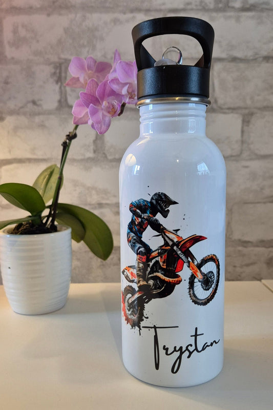 Motocross Personalised Flip Straw Insert Bottle 600ml